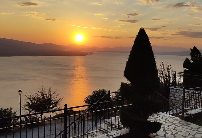 Thermo liegt ca. 50 km nördlich der Hafen.- und Fährstadt Patras. Das Hotel befindet sich etwas außerhalb auf einer Anhöhe über dem östlichen See “Limni Trichonidas”, dem grössten See Griechenlands. Das kristallklare Wasser ist frei zugänglich und es kann überall gebadet werden.